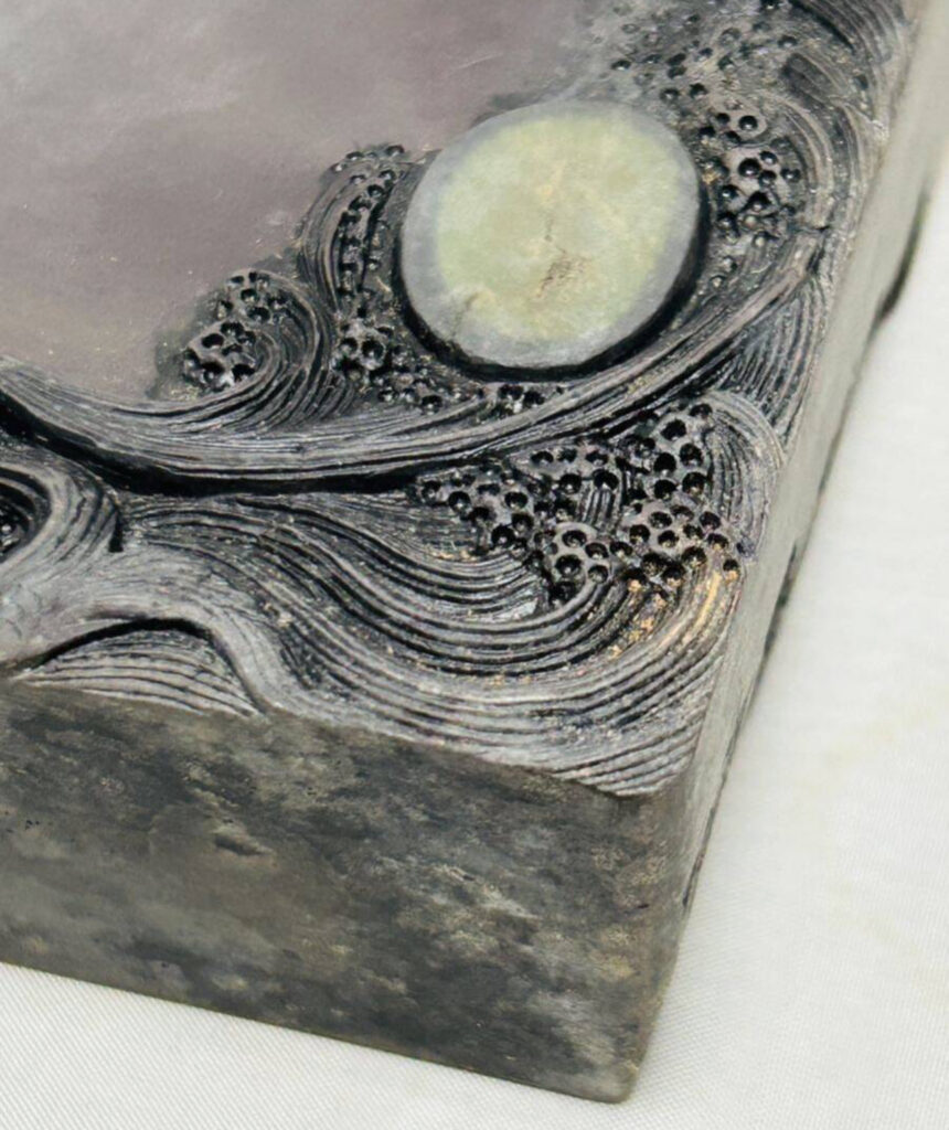 端渓硯の石は粒子が非常に細かく、硬度が高いのが特徴です。摩耗しにくく、数百年使える耐久性を持ちます。